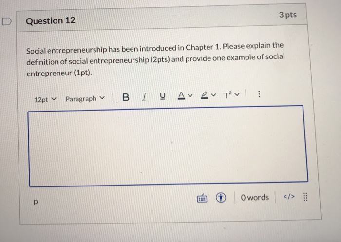 Solved Question 12 3 Pts Social Entrepreneurship Has Been Chegg Com