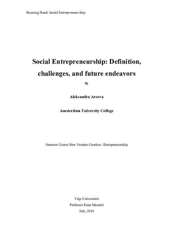Pdf Social Entrepreneurship Definition Challenges And Future Endeavors Aleksandra Arsova Academia Edu