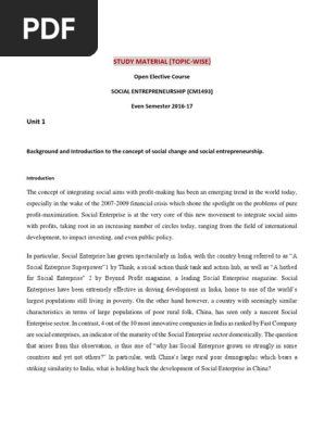 Study Material Of Social Entrepreneurship Cm1493 Topic Wise 1 Pdf Social Entrepreneurship Social Enterprise