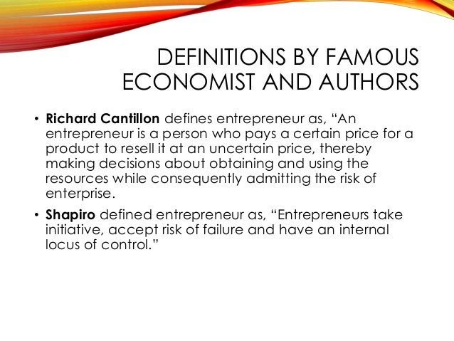 There is no universal consensus on defining entrepreneurship. Definitions of entrepreneur by different authors. Despite the fact that defining entrepreneurship has.