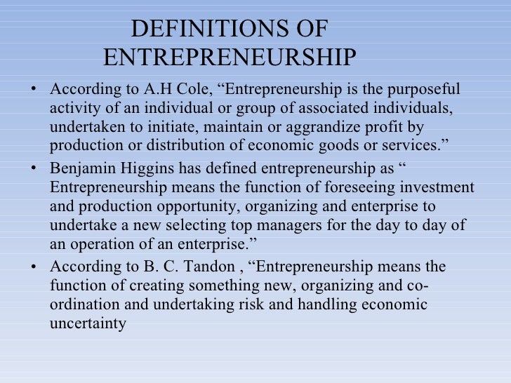 The Definitions Of Entrepreneurship