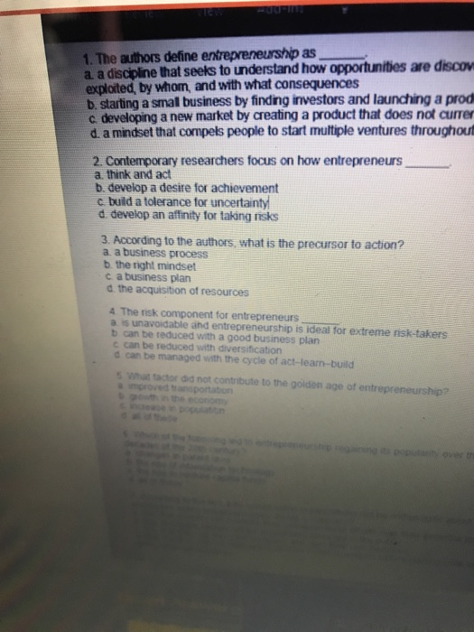 Solved 1 The Authors Define Entrepreneurship As A A Disc Chegg Com