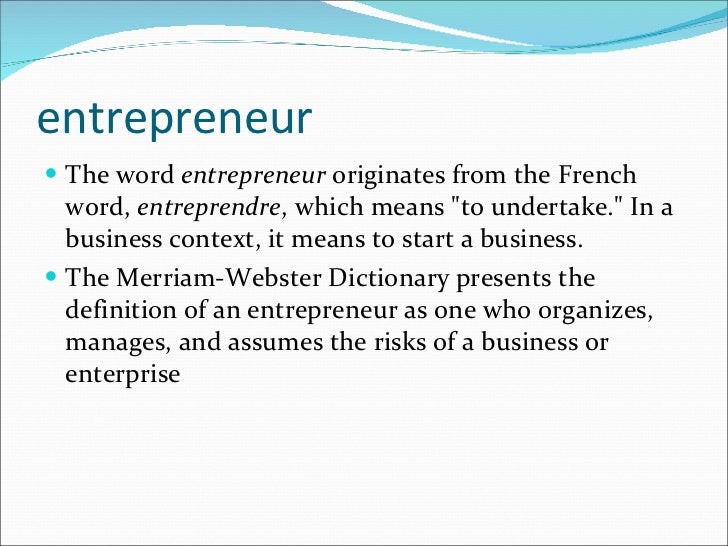 Entrepreneurship Definition Origin Concept
