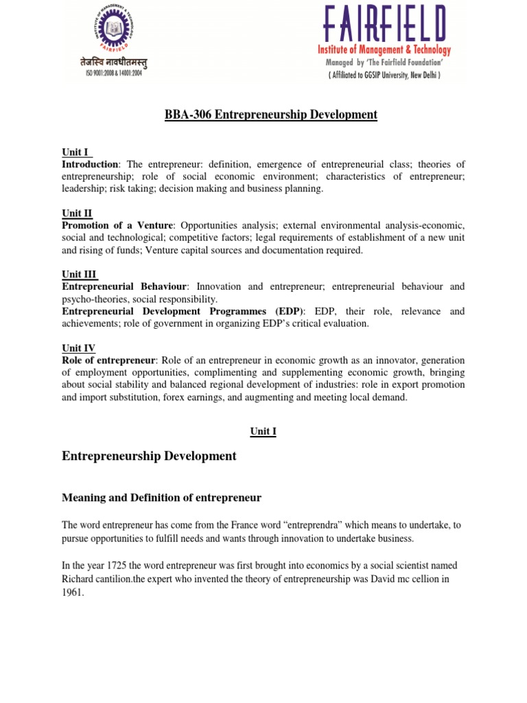 Bba 306 Entrepreneurship Development Pdf Free Download