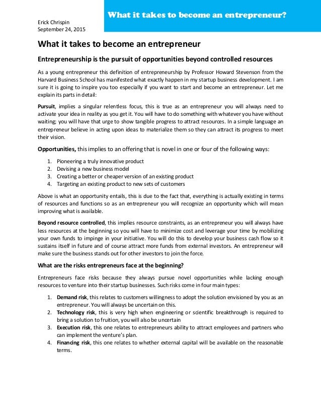 Doc Entr101 Essay Defining Entrepreneurship Sarah Bokhammas Academia Edu
