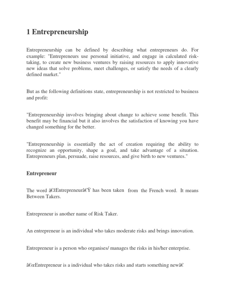 Concepts And Definition Of Entrepreneurship Docsity