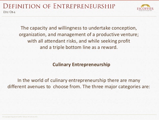 Entrepreneur culinary definition. International journal of entrepreneurship and small business from inderscience publishers publishes and fosters discussion on international cross cultural and comparative academic research about entrepreneurs and smes. Entrepreneurship meets culinary arts. Entrepreneurship definition the terms entrepreneur and entrepreneurship are interlinked one can think of the one without the other.