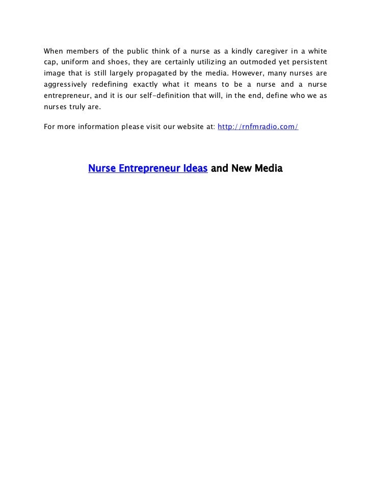 Nurse Entrepreneur Ideas And New Media