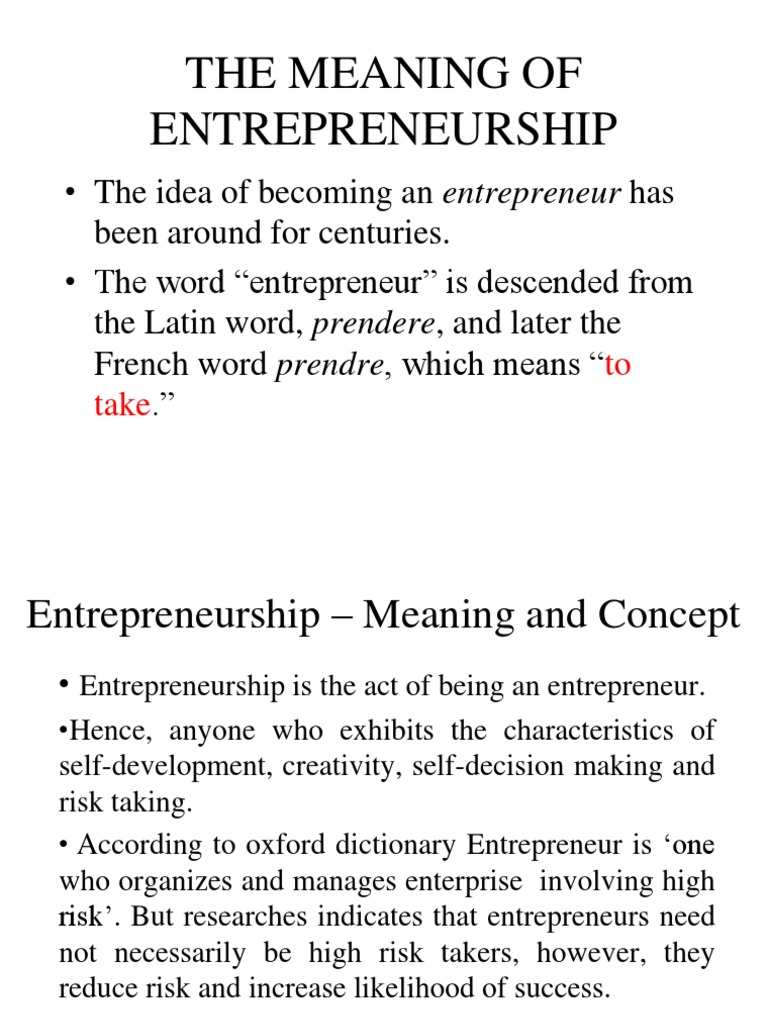 Entrepreneurship can be defined as someones willingness to take higher risks and organize manage and develop a business organization in a market that constantly evolves. Any person any age who starts and operates a business is an entrepreneur. Unit1 definition of entrepreneur internal external factors functions entrepreneurial motivation barriers classification theories concept development of entrepreneurship culture stages in entrepreneurial process 2.