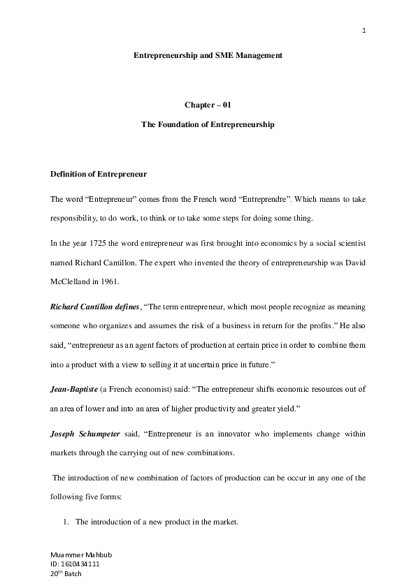Pdf Entrepreneurship And Sme Management Muammer Mahbub Sohan Academia Edu