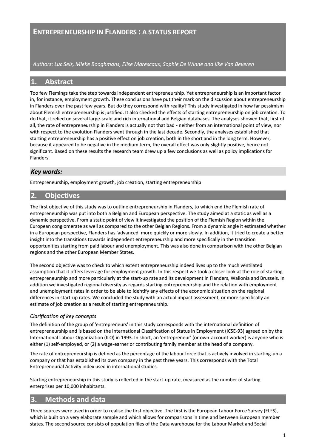 Ondernemerschap Vlaanderen Eng Research Findings Pdf By Vlaanderen Be Issuu