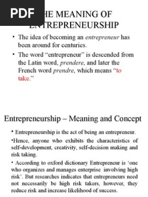 Entrepreneurship Definition Origin Concept