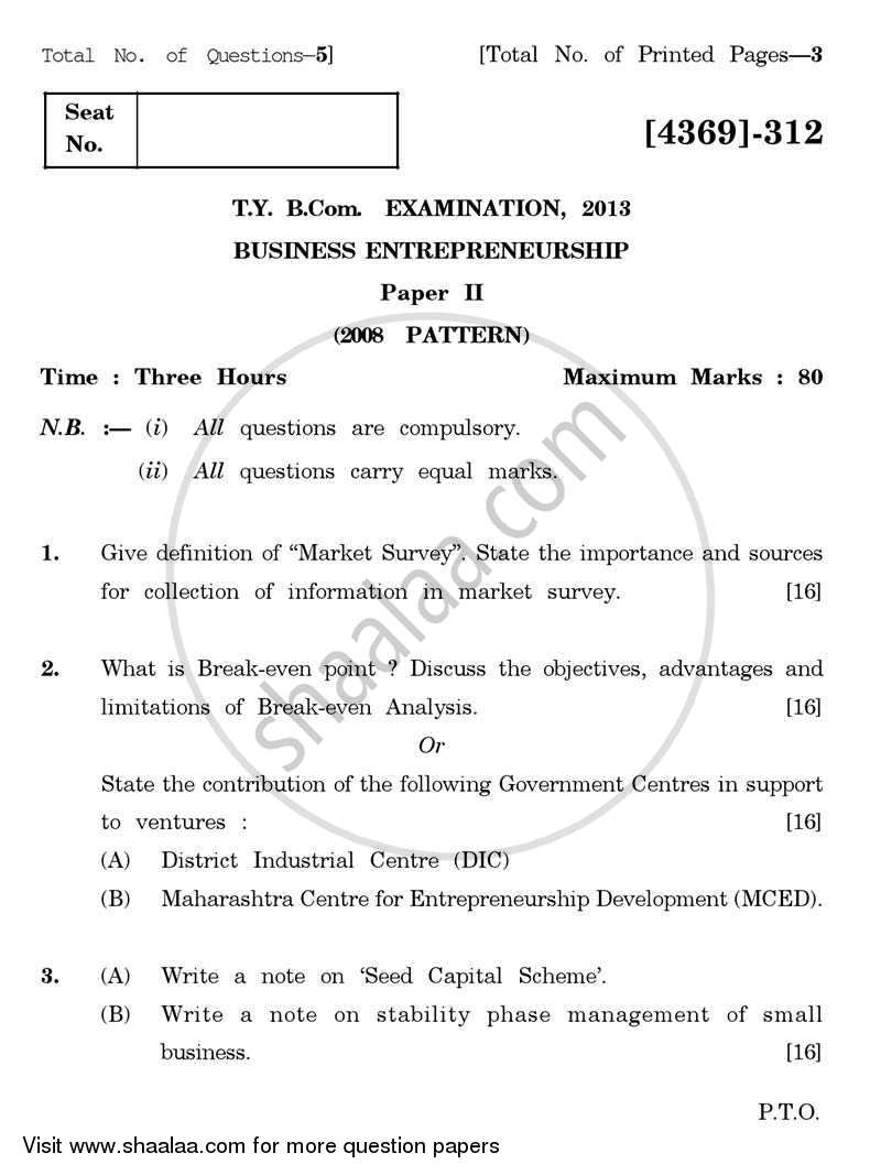 Business Entrepreneurship 2 2012 2013 Bachelor Of Commerce B Com 3rd Year Tybcom Question Paper With Pdf Download Shaalaa Com